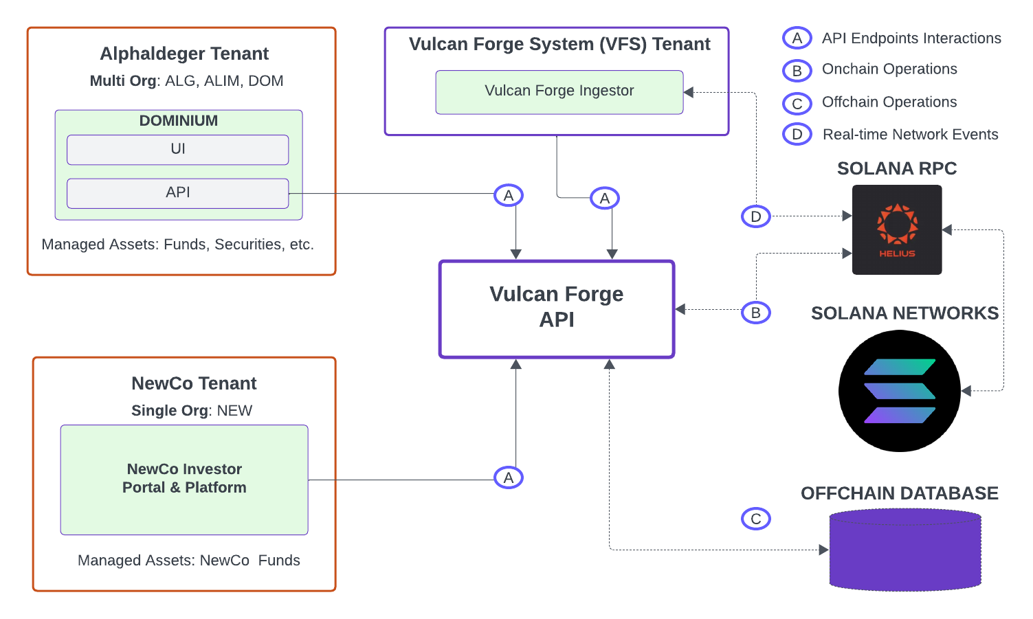 As a multi-tenant software-as-a-service platform, Vulcan Forge allows the concurrent usage of its API endpoints by multiple financial institutions by providing clear separation of data associated with and used by each tenant.There are 3 types of tenants supported by Vulcan Forge:1.